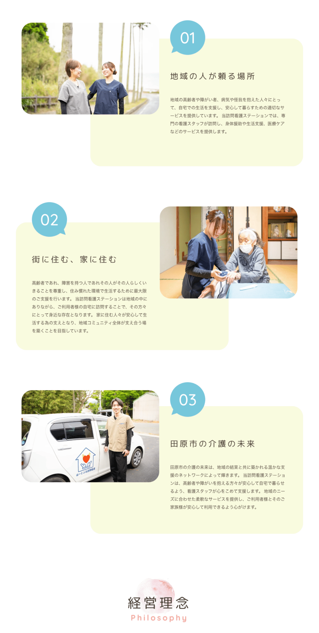 はーとふる訪問看護ステーション様は、愛知県田原市を拠点に、地域に寄り添った訪問看護サービスを提供されている企業です。看護師がご自宅を訪問し、医療保険・介護保険を利用した看護・ケアを行うことで、「地域の人々がその人らしく生活できる場所を作る」という理念のもと、渥美半島の暮らしを支え続けています。 がんやターミナルケアにも対応する専門性の高い訪問看護を強みとし、行政・医療機関・関連企業と連携した包括的な支援体制を構築。地域の幸せをつなぐ存在として、利用者様やご家族に心から寄り添ったサービスを展開されています。