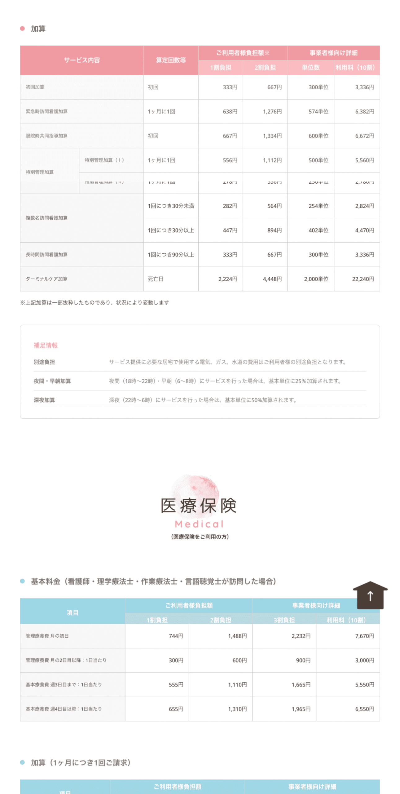 また、訪問看護が初めての方でも戸惑うことなく情報へアクセスできるように、明快な導線設計とやさしい語り口でサービス紹介を整理。 地域の方々が「ここに頼ってみたい」と感じられるような、あたたかく、身近なサイト体験を大切にしました。