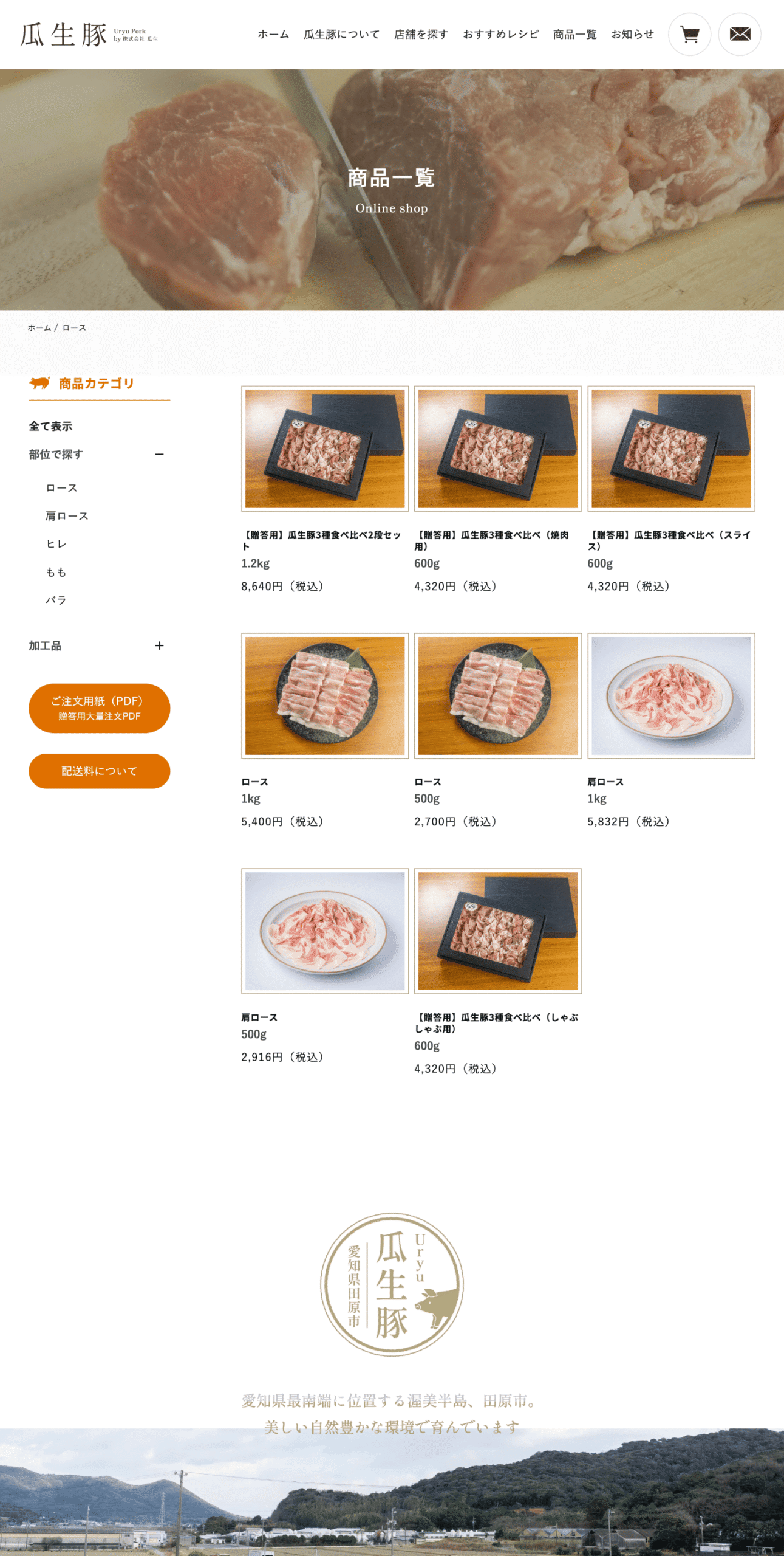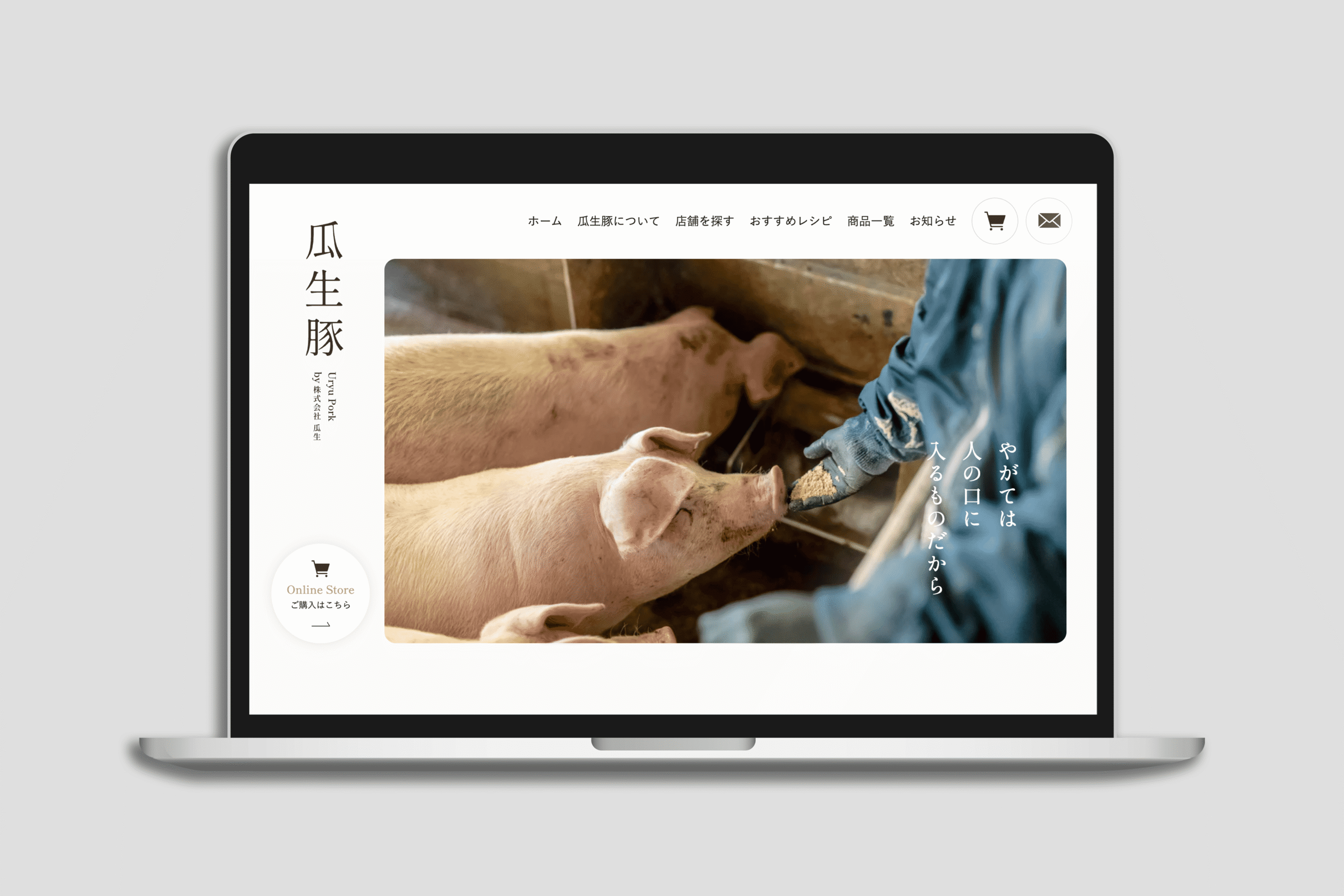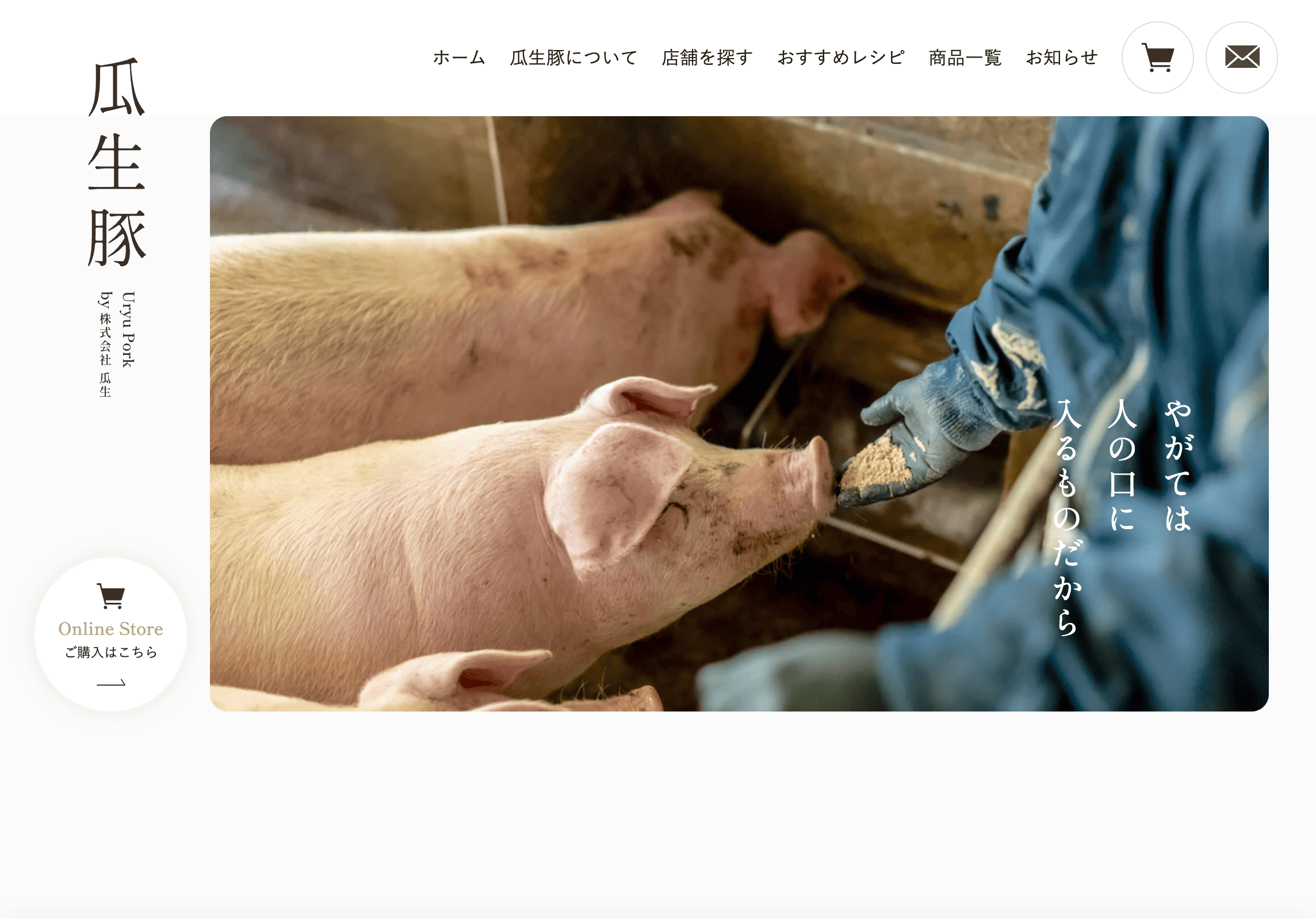 ブランドとしての価値と魅力 を、初めて訪れたユーザーにも 直感的に理解してもらえるサイト設計 を目指しました。 トップページから商品一覧、こだわり紹介まで、 ビジュアルとテキストでストーリーを紡ぐような構成 にすることで、「瓜生豚とはどんな豚肉か」「どんな背景で育てられているのか」が自然に伝わる導線としています。また、オンラインストアやおすすめレシピ、店舗案内など、 次のアクションにつながるコンテンツへの導線 も明確に設計しました。